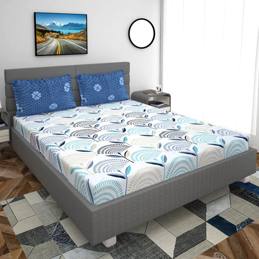 Cotton Blend Elastic Fitted King Bedsheet with 2 Pillow Covers