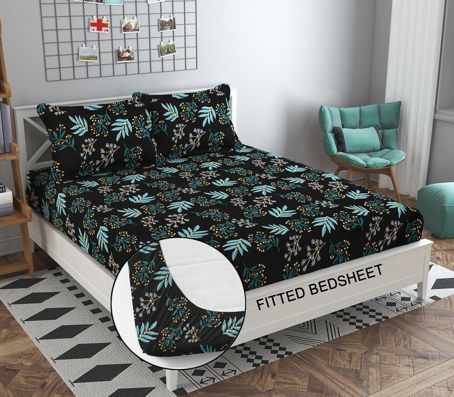 Premium Cotton Elastic Fitted King Size Bedsheet with 2 Pillow Covers (BUY1 GET1 FREE)