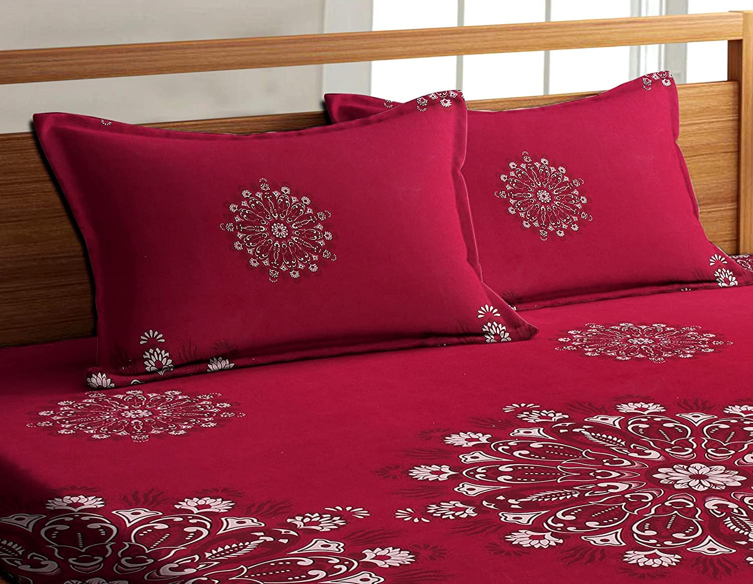 Red Reverie – 210 TC Cotton Blend Bedsheet | King Size (BUY 1 GET 1 FREE)